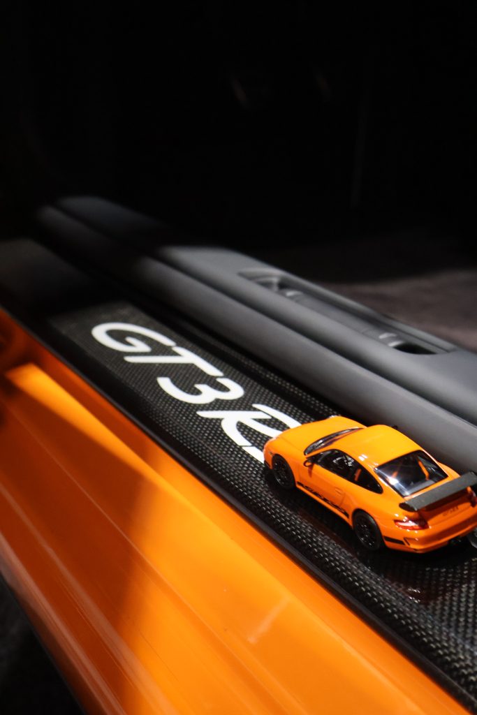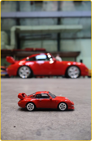 e car I most wanted to photograph was the Porsche RSR. What an absolute beast. I had brought two rare 1:64 Kyosho models with me, and I also made a few other series that day, including one with the new Tulip edition, for which I had the exact 1:64 model in my bag. For the RSR shots, I had to wait a while until the area cleared and there were no people in the frame. That patience paid off. Once I had a clean view, it was just me, the camera and that brutal orange monster.