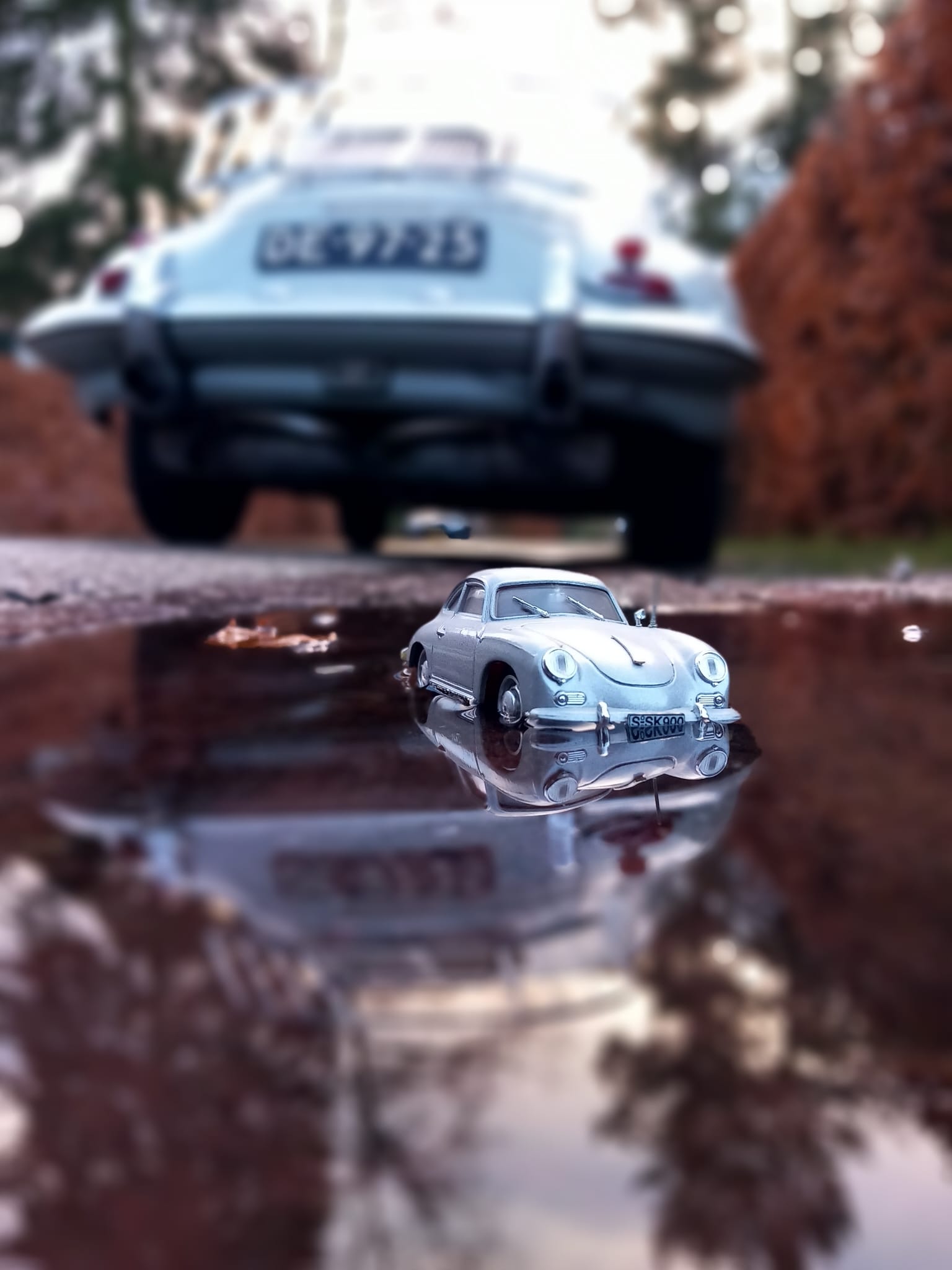 One message was all it took. Someone told me there was a beautiful grey Porsche 356 C in our city, and I was out the door almost immediately. I grabbed my bike, packed a BRUMM model, and went hunting for autumn light.