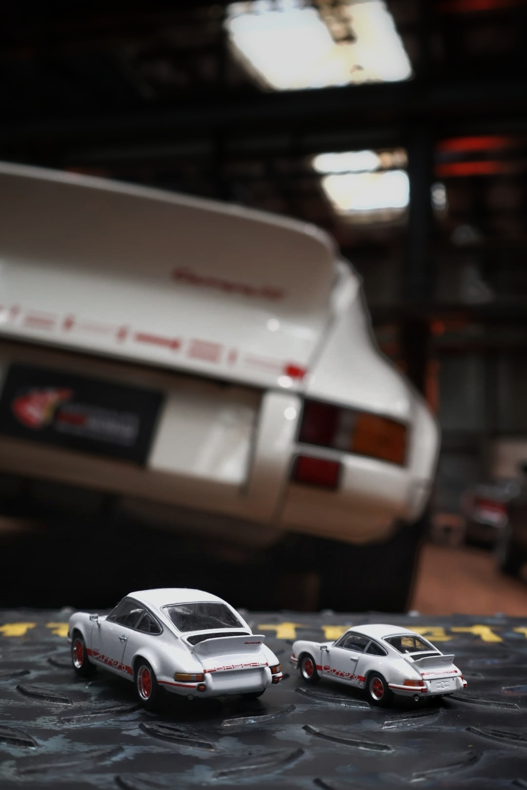 I spotted several fantastic 917s, but one of my favorite photo series from the museum was built around a Carrera Lightweight. I have that model in both 1:43 and 1:64, which made it extra fun to work with. The lighting inside the museum was excellent, and that always makes a huge difference. When the light is right, the real car and the model car suddenly start speaking the same language.