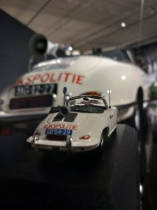 Museums can be tricky places for photography. Beautiful cars, yes. Great light, not always. I also tried making photos with a police Porsche 356 from Minichamps, but that part of the museum was simply too dark to get the result I wanted. Sometimes the car is perfect and the light behaves like a sulking goblin.