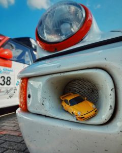 I spent time around several Porsches before the race, looking for the kind of moment where the car, the setting and the model all lock together. One of the combinations I liked most was an Atlas 1:43 model paired with a Porsche 964 RS. The shape of the 964 always works, especially in a racing environment where it feels completely at home.